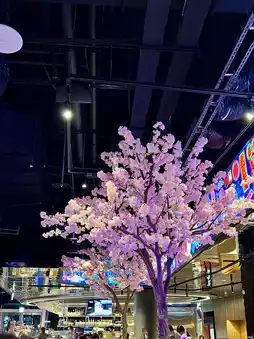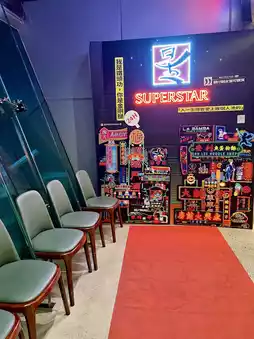 The "Big Star Hong Kong Style Tea Restaurant" located in the Taipei Arena is a Hong Kong style restaurant that offers cocktails, stir-fries, Hong Kong pastries and even garlic chicken soup. The space in the store is very large, and the overall layout is mainly Hong Kong-style neon lights, with several blooming cherry blossom trees adding to the romantic atmosphere.