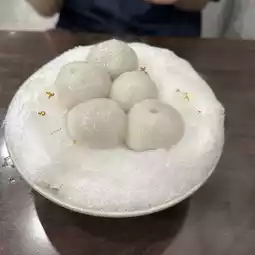 This is my favourite dessert in Taiwan, big riceballs lying on a bowl of shaved iced topped with osmanthus sauce.