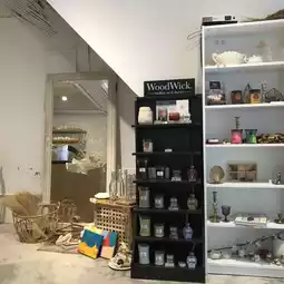 The white-themed interior with wooden furniture is stylish.