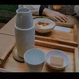 The douhua (a snack made with bubble and sugar water in soft tofu) is not cold but warm, so it warmed my stomach