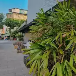 After choosing, paying, and then going out to find a seat. In front, there will be tables, trash cans, and bathrooms. Awesome!