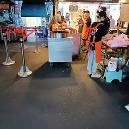 To cool off, I grabbed a papaya milk drink, which was both refreshing and rich, perfectly suiting the warm night. The experience wouldn't have been complete without indulging in some Taiwanese desserts—mochi with peanut powder and egg waffles topped the list of sweet treats we tried.