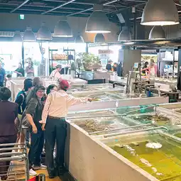 After the live seafood area, there will be a supermarket, selling sushi, sashimi, seaweed, processed and cut pieces of longleg crab, emperor crab, lobster, etc., can be bought and eaten, people who eat at the door, mostly here Purchase