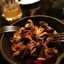 Because I had a rich dinner before, I just simply ordered a snack "Garlic Little Octopus" 🐙. I didn't expect this snack to be done so well! The small octopus is fried crispy and delicious, with a strong garlic flavor, very tasty, very good with Cocktails! 😋