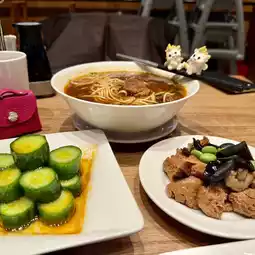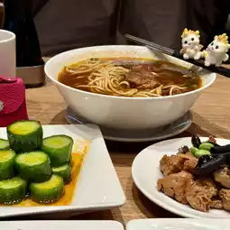 Today weekend at 11 o'clock, I went to the first floor of Far Eastern Department Store A13 (Din Tai Fung). The four of us ordered a table of delicious dishes (braised beef noodles), (steamed vegetarian dumplings), (cucumber), (sweet and sour spareribs), (dry flat beans). Desserts (chocolate dumplings), (taro dumplings). The service staff was friendly. The ingredients were fresh. The taste was really delicious 😋 Hehe. I was in a good mood. I kept eating one bite after another. I couldn't stop at all.. Delicious food. Makes people happy. A recommended gourmet restaurant
