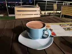 The view from Mountain Coffee is quite nice, you can see Taipei City and Taipei 101. The basic expense is a drink, and in winter, a hot drink is very warming! My friend also ordered the green curry rice for 300 NTD, and it was quite delicious.