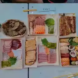 The other zone is a supermarket where you can buy sashimi and sushi in packs. It may be a bit less fresh than the first type, but the price is okay. It's not too expensive. When you're done shopping, there's a corner in front where you can sit and eat. If you're coming back, don't forget to stop by and eat. It's guaranteed to be delicious.