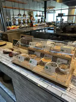 🥗 Salad bar uses seasonal vegetables, fruits. Additionally, there are offering healthy options such as oatmeal, yogurt and fresh salads, allowing customers to easily choose low-calorie and high-fiber foods.