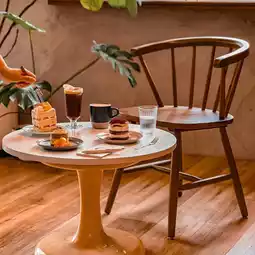 Choose the only small round table leaning against the window with plants and sunshine 🪟🪴☀️