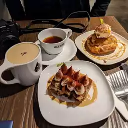 Great place with lots of coffee choices, desserts and savories. My taste in music. Good place to sit and do your work or chat. It's not too pricey considered they let you sit pretty much as long as you want.