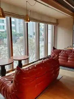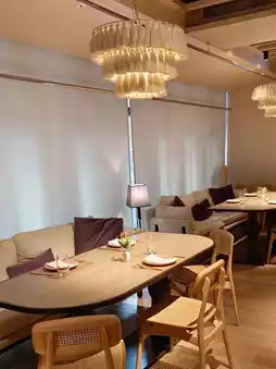 The seating is designed with sofas and dining tables. The distance between the seats is far enough, and the dining atmosphere is very good.