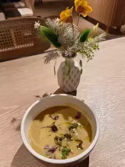 The set menu includes a salad, roasted sweet corn soup and a daily dessert