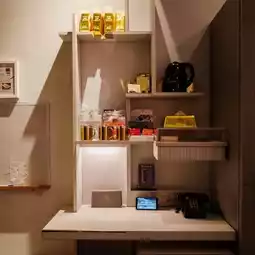The lobby and guest rooms are decorated with safes, gold bullion motifs, and metallic decorations, giving a unique feeling as if you are staying in a financial history.