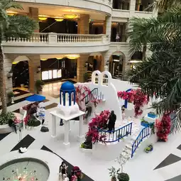 When I passed by Bellavita while shopping, I entered another world in 1 second. The Greek style is romantic and beautiful. I forgot to wear a dress 😆. Flip-flops are also suitable for taking photos together 😝. I also saw parents bringing their little princesses to take photos. They are very cute and beautiful. Come with the whole family!