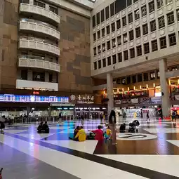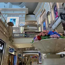 The food court on the lower level, however, presents a different scene. It's bustling with people, with long queues at various food stalls. It seems that the love for food among Asians is always high.