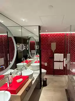 The public areas of the hotel are so beautiful! The art installations in the lobby and the stylish sofa area are all great photos! 📸 There is also a super beautiful sky bar. When the lights are on at night, it is so romantic~🍸