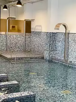 The public areas of the hotel are so beautiful! The book wall in the hall and the designed sofa area are all great photos in any shot! 📸 There is also a super beautiful open-air hot spring pool. When the lights are on at night, it is so romantic~💐
