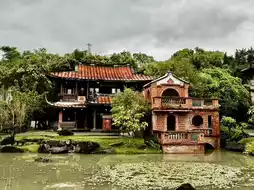 The crescent-shaped pond in front of the house, according to Chinese geomancy, is designed to gather and store wealth. It not only serves defensive, fire prevention, water supply, and cooling functions but also enhances the environment of the historical house.