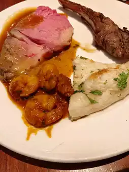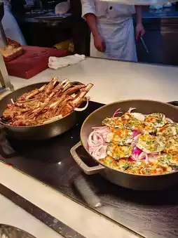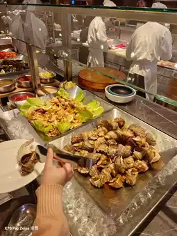In addition to the signature truffle risotto, the hot food area also has eye-catching lamb chops and baked scallops, and the oven-roasted steak is also above standard.