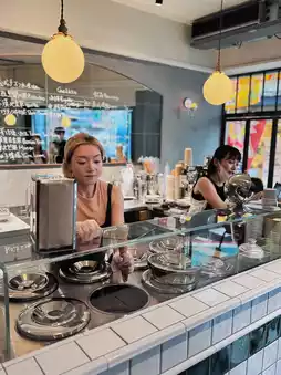 As soon as you step into KaKaZan Ice Club, it feels like you’ve traveled to Europe. The handwritten mirror, emerald tiles, and various small details all demonstrate the unique taste. It can be seen that the store has put a lot of thought into the decoration. Its main product is Italian handmade gelato🍦. In Japanese, "kakazan" means Flower and Fruit Mountain, which is full of vitality and joy.