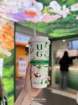#tripแจกโรงแรมฟรี uni green, a new and very popular milk tea shop in Taipei. Walking past the branch, there were always long lines. For example, we went to the one near Taipei Main Station and waited for 15-20 minutes. But their tea is really good, I can't argue that. The packaging is cute and eye-catching. The operation method is also very modern. The shop uses a QR Code system from the order that we ordered. Then, it is scanned at the machine and it comes out in a glass.