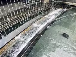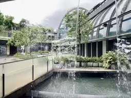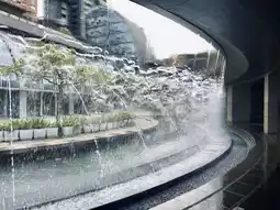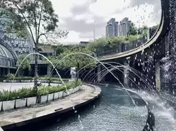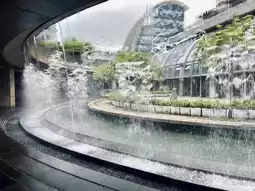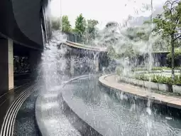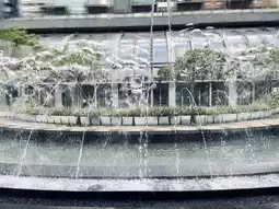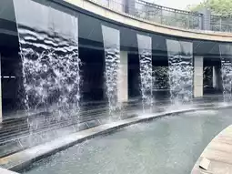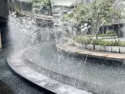 The fountain show occurs every hour and features three different styles. During the day, it feels refreshing and natural, perfect for cooling off. The water sprays are quite large, so standing too close might get you wet! There's even a turtle in the pool! Each fountain show lasts about 10 minutes.