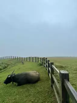 #Travel to save the world Qingtiangang Grassland, Taiwan or read as "Qingtiangang" is a wide grassland on a mountain in Yangmingshan District. The atmosphere is very natural. There are mountains, grasslands, cool winds and soft sunlight. On the day I went, I encountered some fog and light rain along the way, making the view look soft in another way. It's comfortable to walk, the air is cool and refreshing, and even cold. 😂