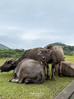 Another highlight is that there are buffaloes living in various corners of the field, quietly eating grass, making us feel like we are really in the middle of nature. It's suitable for those who want to escape the city, breathe in the fresh air, take pictures, or just sit and look at the view. It's awesome.