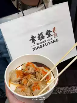 #VisaFreeTravel Let's go to Taiwan with Xin Fu Tang, a popular milk tea shop at Ximending Night Market. It's easy to see because it's located at the intersection in the middle of the road. It's located on the corner, opposite POPMART. It stands out with bright lights, a red logo, and the smell of brown sugar wafting from afar. The highlight menu is bubble milk tea topped with sugar and chewy pearls. There are also xiao long bao to eat with it, making it a great light meal while walking around. Each costs 120 TWD.