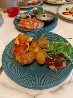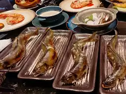 The fried and grilled food station includes warm oysters, fried oysters, fried shrimp, fried abalone and other Japanese fried foods