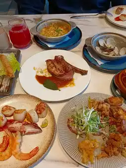 The holiday dining table is not much different, lunch and afternoon tea are both 2.5 hours, dinner is 3.5 hours, but one more portion can be served with half a lobster, it depends on your preference☺️