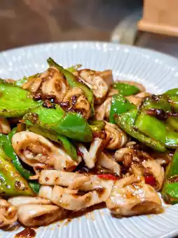 Today’s stir-fried pork intestines with black bean and chili sauce were quite good, though the sauce could have been reduced a bit more for a richer flavor. Even so, I was satisfied with the dish.