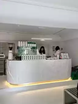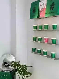The space features a sleek white-and-green color scheme, complemented by modern decor and cozy seating, creating a perfect retreat for coffee lovers and social gatherings. Guests appreciate the carefully crafted drinks, elegant presentation, and inviting atmosphere, making it an ideal spot for relaxation and casual meetups.