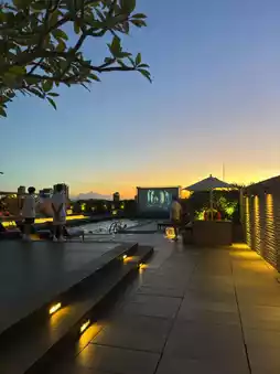 • The pool is located on the 3rd floor, ideal for relaxed swimming. The real magic happens after 7:00 PM when it transforms into a 'floating cinema'! You can lounge on a float and watch classic films (they were screening *Titanic* that day). Staff even serve popcorn and chilled towels, instantly lifting the gloomy typhoon mood.