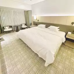 In terms of accommodation experience, the hotel's guest rooms are simple and stylish in design, and the rooms are fully equipped. The spacious and comfortable rooms are equipped with king-size double beds, allowing you to enjoy sufficient sleeping space. The bathroom is separated into dry and wet areas, and has a bathtub, so you can soak and relax after the journey.