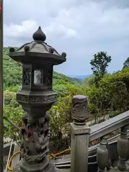 There is a cafe below the temple, serving simple tea and coffee (if available) for a donation of your choosing, or vending machines as well, and this shares the same expansive view of Taipei, you can enjoy the view and watch the planes taking off from the airports as life floats on by