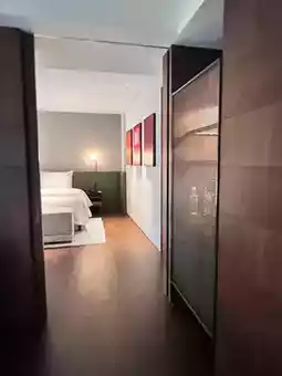 Once you enter the room, you are attracted by the large floor-to-ceiling windows, natural light sprinkled throughout the space, with warm wooden tone decoration, instantly relax ~ The bathroom adopts dry and wet separation design, marble countertops with matte glass, full of luxury! The most surprising thing is the free drinking at the in-room minibar and a capsule coffee machine