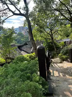 The Shaoshuai Zen Garden is located in Beitou. You can take a bus or taxi from the Xinbeitou MRT Station to the mountain. The Shaoshuai Zen Garden was originally the residence of Zhang Xueliang during his confinement. The architectural style incorporates strong Japanese elements and is infused with Zen design concepts to create a quiet and elegant atmosphere. Zhang Xueliang spent a period of confinement here. Later, this place was transformed into a cultural attraction, allowing today's tourists to walk into history and feel the traces left by that time. The entrance ticket of 200 yuan can be used as a consumption, but we don't need to pay for the ticket if we make an appointment for the hot spring house. After entering the gate, you have to walk up a flight of stairs to enter, and along the way it feels like you are in a Japanese garden.