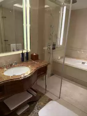 We chose a room with a balcony, but unfortunately, the view was of a building under construction. Additionally, the large public bath and sauna were under renovation until July, so we couldn't use them. We'll have to come back another time to try again.