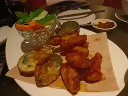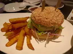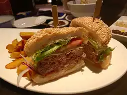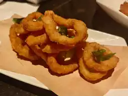 This time, we ordered beef noodle soup, a beef burger, a platter of fried snacks, crispy fried calamari rings, salad, and dessert.