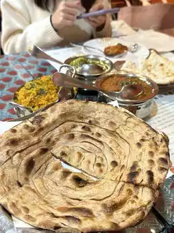 The naan bread is incredibly soft and chewy, and paired with the spinach, chicken, or lamb curry, it's both delicious.