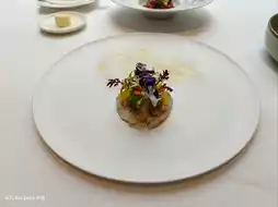 The menu offers both à la carte and set menus. The new chef's menu features a surf and turf feast with king crab for $4280 (25% off for 2-4 people with a Dining Card). There's also a weekday lunch-only business lunch combo for $1680, which includes an appetizer, soup, main course, and dessert or fruit. (If using a Dining Card, the original price is $2480.)