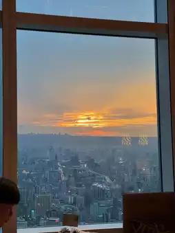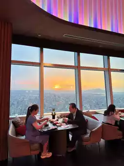 The décor is modern and luxurious, with large floor-to-ceiling windows that let in sunlight during the day and a dazzling array of lights at night, making it the perfect spot for a date or an anniversary celebration.