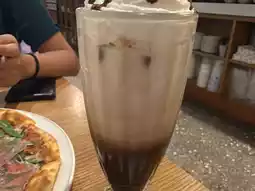 There are also many restaurants in the park. I went to Alleycat's Pizza. The food was delicious, and they even gave me a free drink with my check-in. I got a delicious mocha! 👍🏻