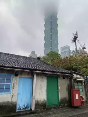 Sisinan Village was once a military village in 1948. Now renovated, it's a museum and cultural space. Featuring a pair of low-rise traditional buildings, the blocks of houses are lined up with blue door frames, making for a cool photo opportunity with a view of Taipei 101.