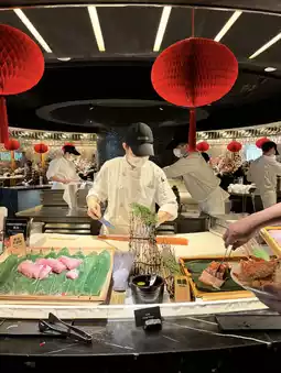 • Other Buffet Meals — Enjoy a full sushi bar featuring a variety of fresh sashimi, seafood, stuffed crab, and roast beef, as well as a pasta maker to create your own style.