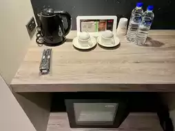 While the exterior and front desk area of the hotel may feel a bit dated, the rooms are spacious and impeccably clean. ✨ Amenities such as bottled water, a kettle, slippers, and a hairdryer are provided, and the shower even features high-tech functions. 😎