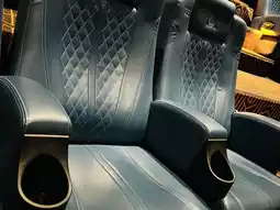 The screen in this theater uses a high-brightness RGB projector, and the audio system is all hidden 7.1 surround sound. Moviegoers cannot see the audio system after entering, and will feel the grand sense of space of the entire theater even more. The theater's scented air conditioner uses John Ray's Cote d'Azur fragrance. The citrus-sounding bergamot and the pine-scented oak moss blend together to create a marine scent, which echoes the elegant blue leather seats, perfectly interpreting the name of this Greek Titan. The palace-like theater is top-notch from equipment to decoration!