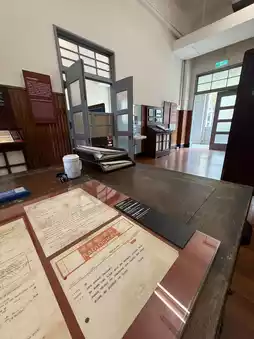 Stepping through the door, the interior retains the original layout of the space, with simple furnishings and sturdy wooden tables and chairs, exuding an air of history. The exhibition area displays precious documents and old photos, documenting the golden age of the railway, when factory directors planned blueprints and issued orders here. Every yellowed piece of paper and every worn object whispers a memory of the glory and responsibility of those days.