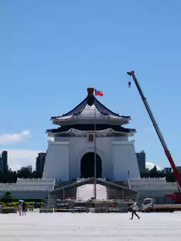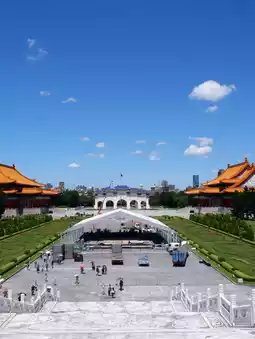 If you're visiting Taipei, a must-see is the Chiang Kai-shek Memorial Hall. This is a major landmark of the city. The striking white building with a blue roof is easily recognizable from afar. The spacious surroundings feature gardens, fountains, and beautiful buildings, perfect for strolling and taking photos.
